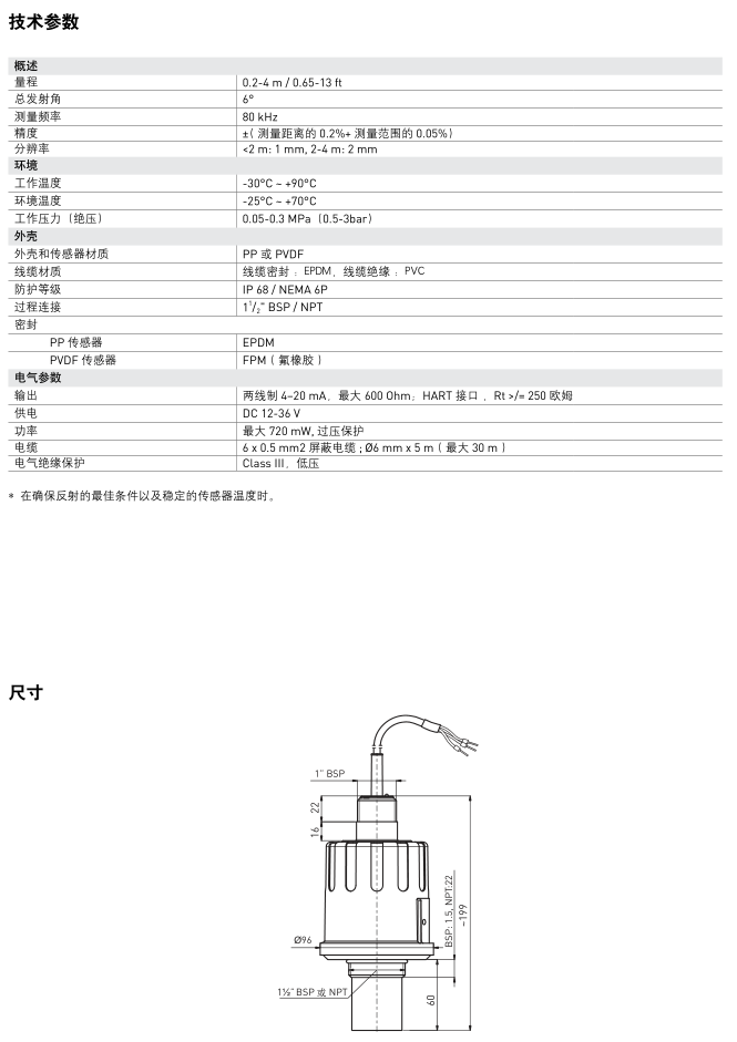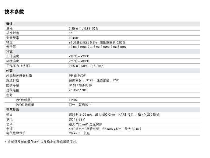 ? ?2270 是一款堅固耐用,高性能的超聲波液位測量儀表,其傳感器,電子部件以及顯示 / 編程單元結(jié)合于單獨(dú)一 個外殼中。所使用的是被廣泛接受的 2260 超聲波物位變送器的成熟回波偵測系統(tǒng)。 對于單罐或多罐的應(yīng)用兩線制傳感器推薦使用 HART 通訊或者 4-20 mA 直接跟面板安裝控制器或 PLC 連接。不管是水池或儲罐上的液體物位測量,存儲體積測量 , 或明渠流量測量,2270 均可實(shí)現(xiàn)。最大量程 6m。PP 和PVDF 傳感器本體提供最佳的耐腐蝕性,適合高濃度化學(xué)品應(yīng)用。?